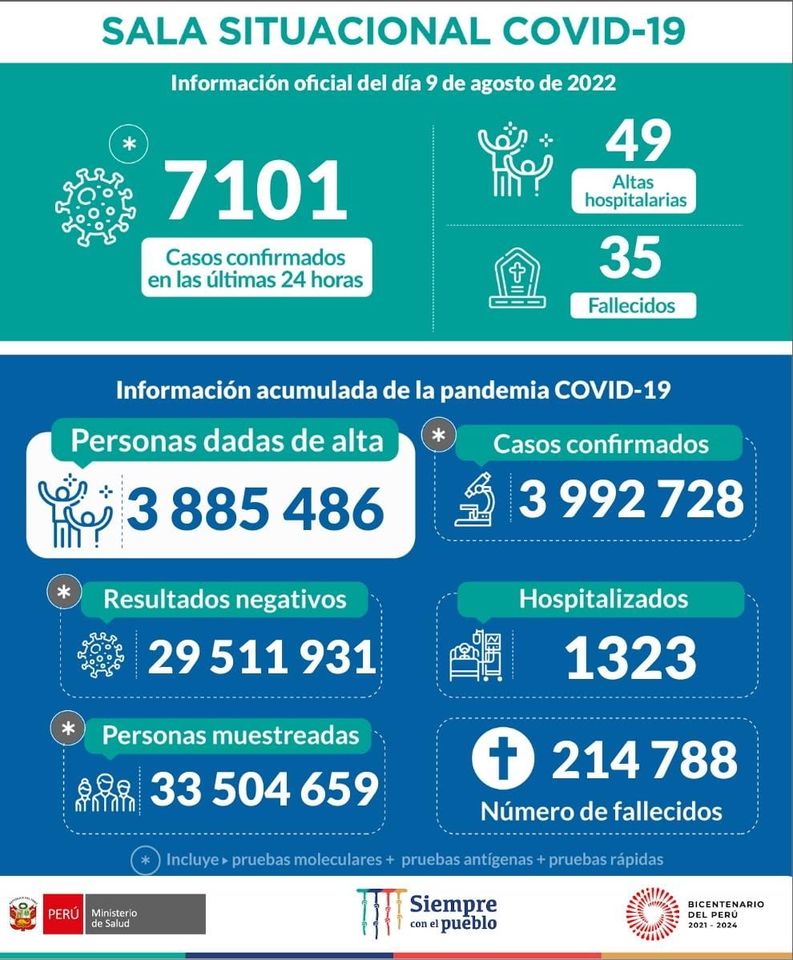El Miniterio de Salud ha entragado las nuevas cifras de la COVID infeccion en Perú:
